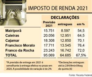 MAIS da metade dos mairiporanenses já enviou a declaração do Imposto de Renda ano base 2020, até esta quinta-feira (6), segundo dados da Receita Federal. Mesmo assim, tem o menor número de documentos entregues na comparação com os demais municípios da região.