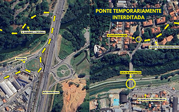 Ponte de acesso à Caceia e Chácara Arantes ficará interditada durante 1 mês