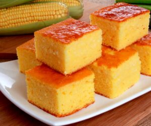 Ingredientes: 3 copos de milho picado; 1 e 1/2 copo de açúcar; 1 copo de leite; 2 xícaras (chá) de farinha de trigo; 1 colher (sopa) de fermento em pó; 1 pacote de coco ralado ou queijo ralado; 3 colheres (sopa) de manteiga e 3 ovos inteiros.