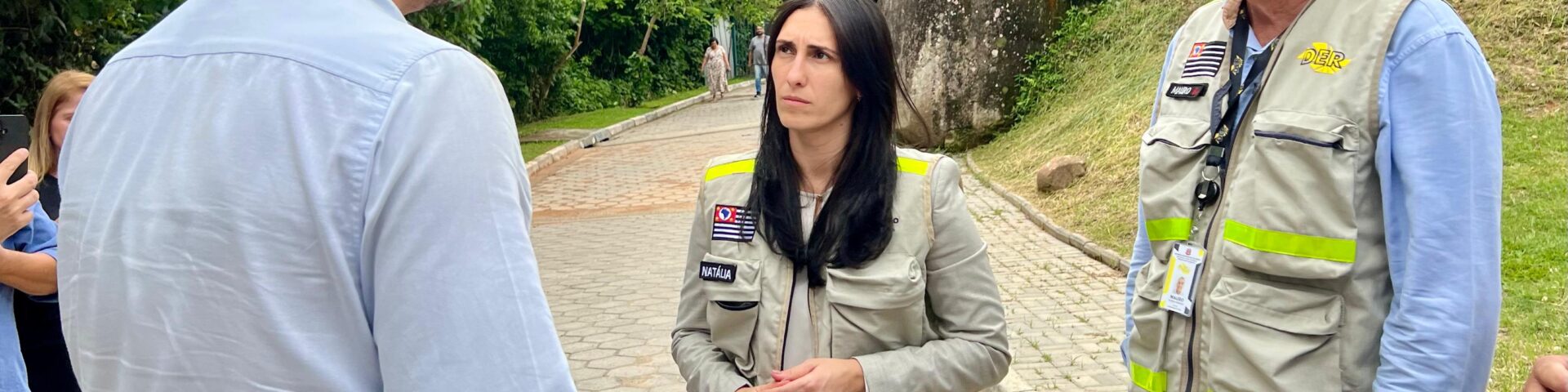 A visita foi avaliada como positiva e produtiva, permitindo alinhamentos técnicos, verificação do cronograma e o reforço do acompanhamento permanente por parte da Prefeitura sobre a execução da obra, considerada um avanço significativo para a infraestrutura viária de Mairiporã. (Cláudio Cipriani/CJ – Foto: Secretária de Estado, Natália Resende, o prefeito Aladim e Mauro Cardoso, coordenador do DER / Divulgação0