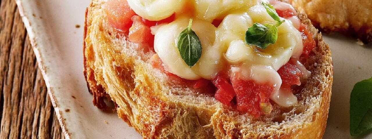 BRUSCHETTAS DE TOMATE E MOZARELA DE BÚFALA
