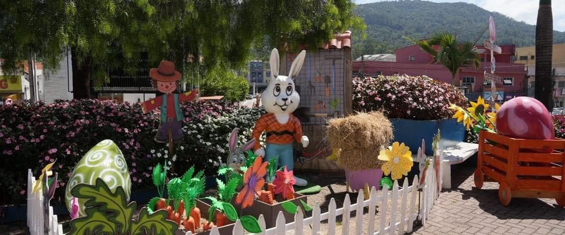 Pela primeira vez na cidade as famílias contam um espaço para tirar fotos, levar as crianças para brincar e valorizar o artesanato e a cultura durante a Páscoa. A Vila do Senhor Coelho, instalada na Praça do Rosário (foto), região central, já está totalmente decorada e contará com uma programação especial, com diversas brincadeiras e apresentações culturais para todas as idades. A programação que acontece neste sábado (8), das 10h ás 13h, terá apresentação do grupo Afinidades, com show do trio instrumental formado por Jorge Nascimento, Tiago Santos e Marco Papa, além da oficina de máscaras temáticas e pintura em rosto. Também fará parte da Vila a feira do artesanato. Uma oportunidade para que toda a população possa participar da celebração da Páscoa em um ambiente temático e seguro, que valoriza a cultura local. (Da Redação – Foto: Divulgação)